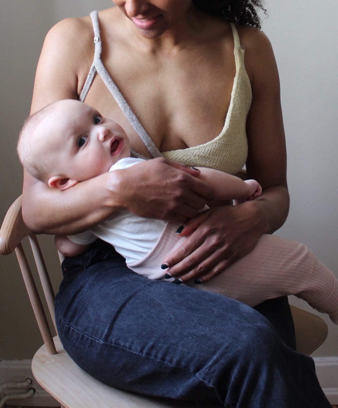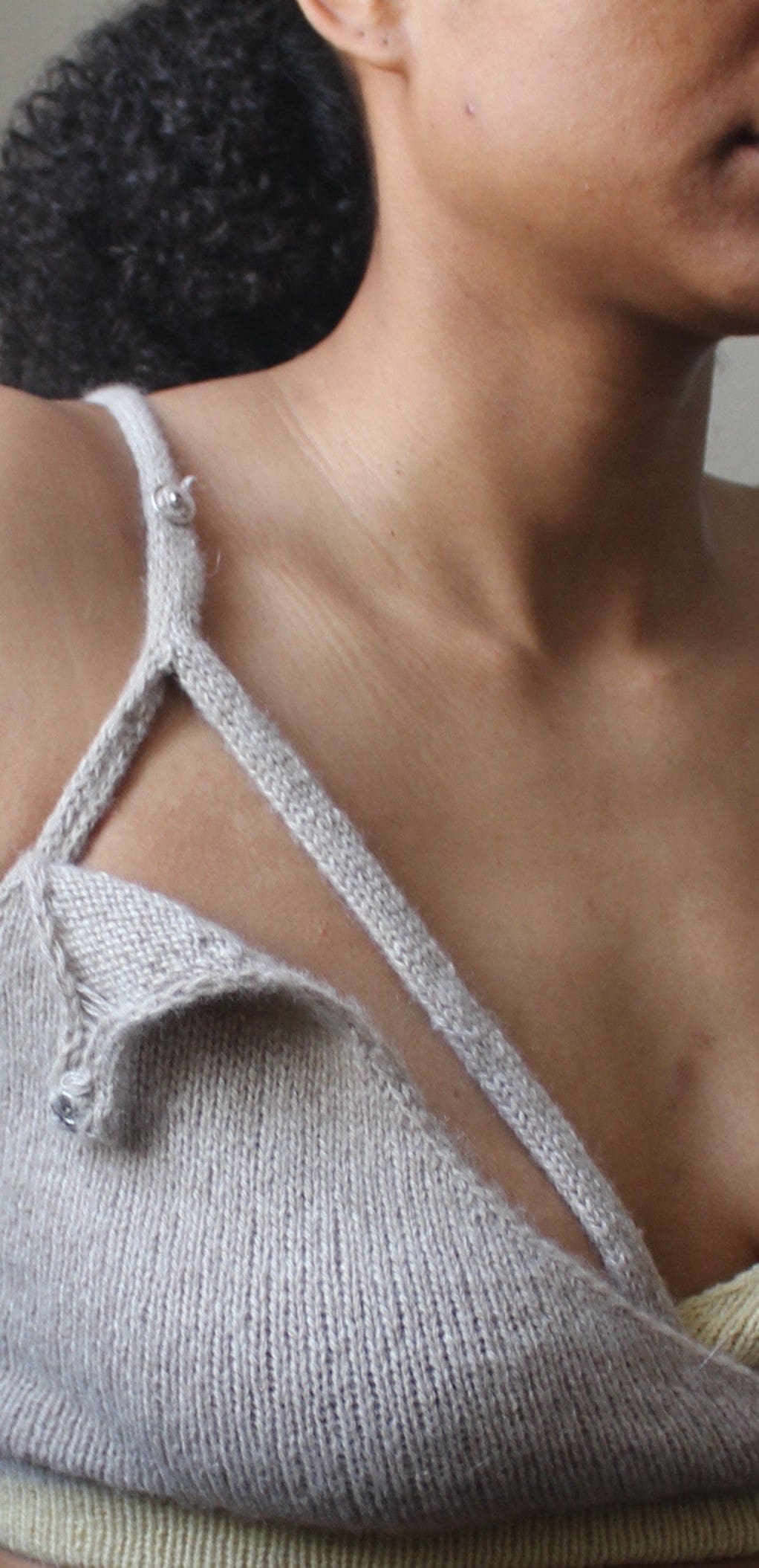 The Milk Wrap er en enkel, fin og behagelig amme-bh/top. The Milk Wrap strikkes oppefra og ned, og strikkes efter egne mål for bedst mulig komfort og pasform. Opskriften indeholder både opskrift på bh’en og på toppen.