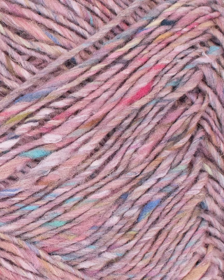 Garnet er entrådet, derfor anbefaler vi at strikke det sammen med en silk mohair, hvis du skal strikke rundt.