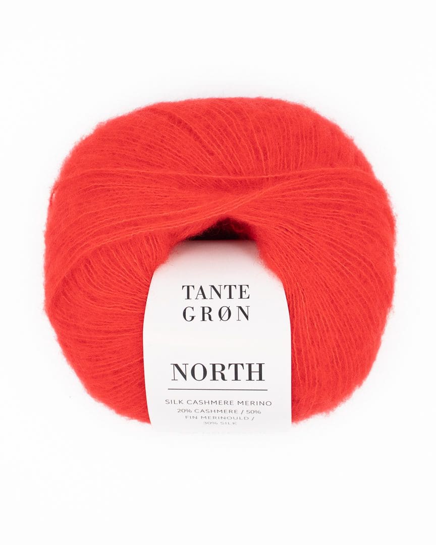 North giver et fjerlet og eksklusivt resultat. Det består af 50% Fin Merinould, 30% Silke & 20% Cashmere. Nøglet vejer 25 gram og har en løbelængde på 275 meter.