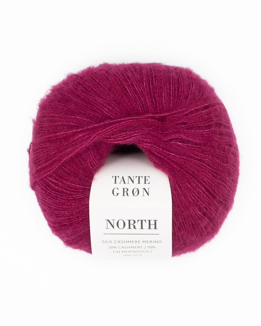 North giver et fjerlet og eksklusivt resultat. Det består af 50% Fin Merinould, 30% Silke & 20% Cashmere. Nøglet vejer 25 gram og har en løbelængde på 275 meter.