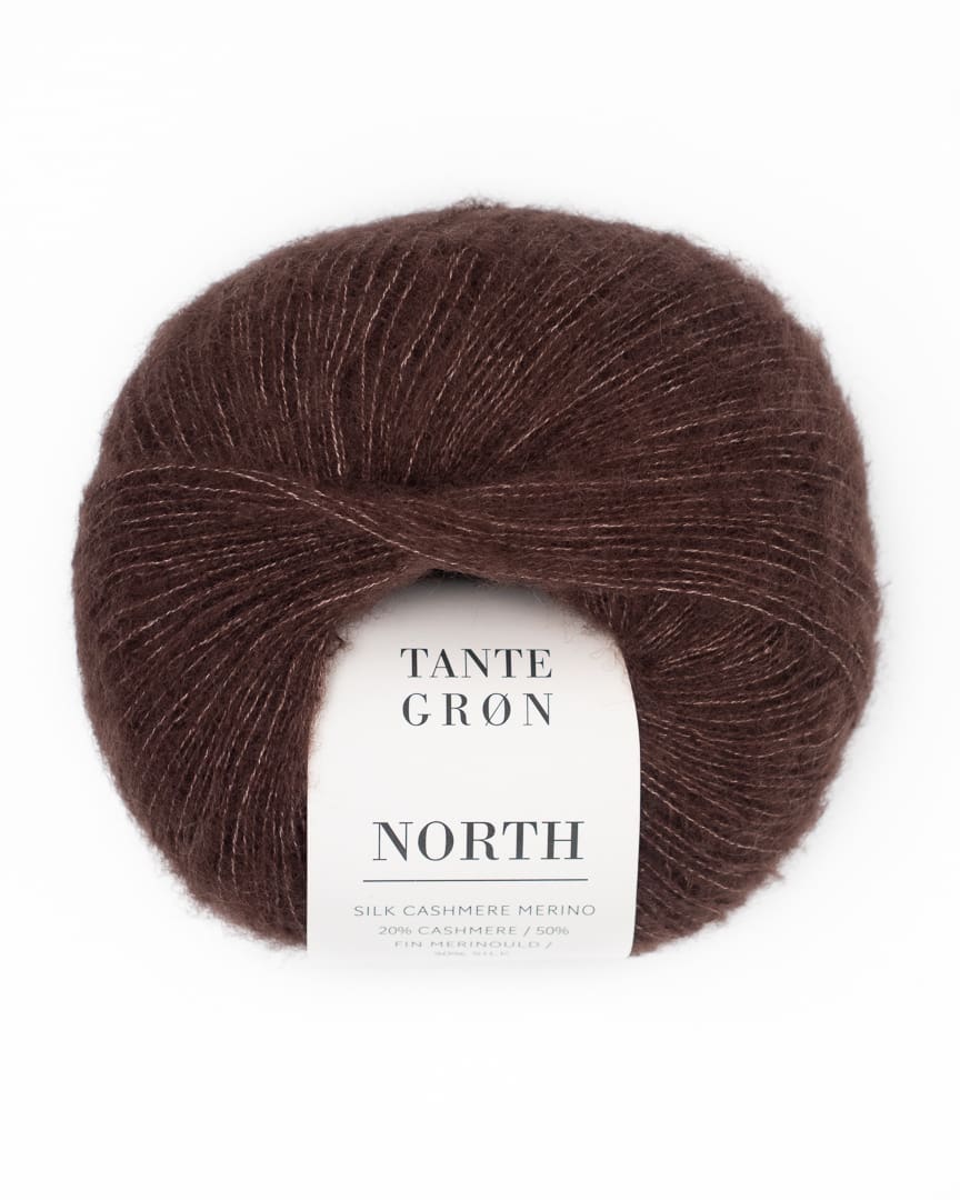 North giver et fjerlet og eksklusivt resultat. Det består af 50% Fin Merinould, 30% Silke & 20% Cashmere. Nøglet vejer 25 gram og har en løbelængde på 275 meter.