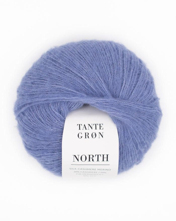 North bruges til fjerlet strik og kan være en erstatning til Silk Mohair. Ønsker du at strikke North i to tråde giver det et tæt og fint resultat på pinde nr. 4. Det ses blandt andet i North Scarf. Du kan også strikke Sophie Scarf i to tråde North.