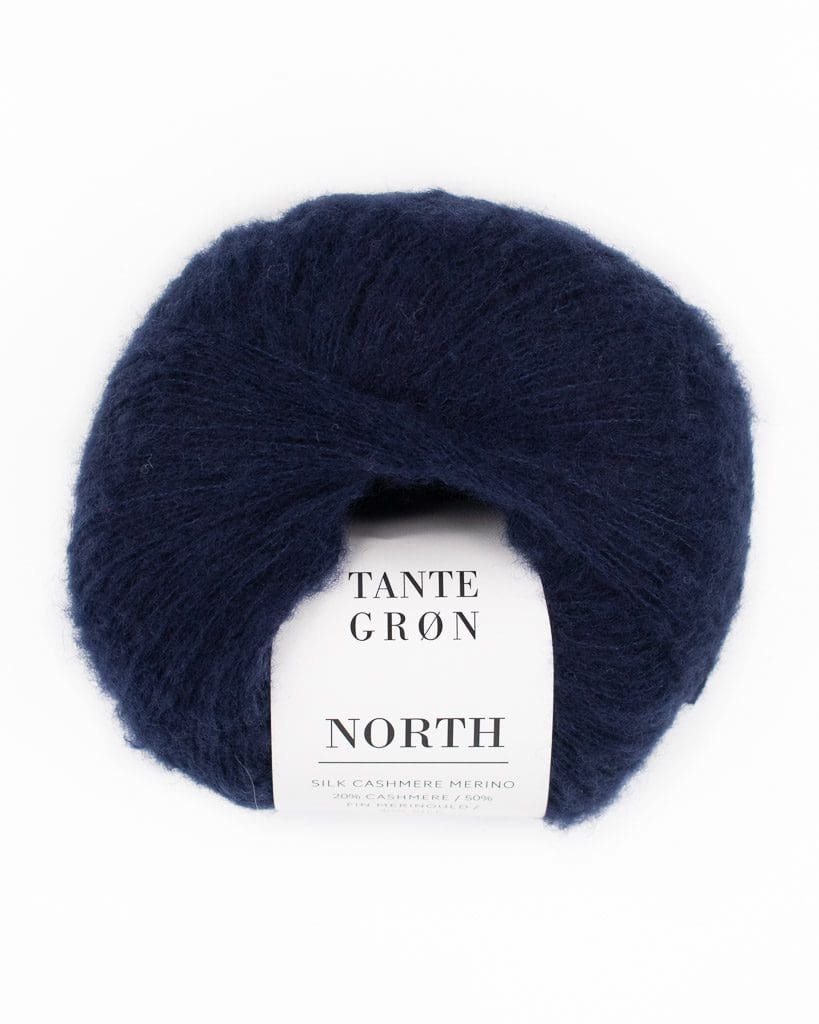 North giver et fjerlet og eksklusivt resultat. Det består af 50% Fin Merinould, 30% Silke & 20% Cashmere. Nøglet vejer 25 gram og har en løbelængde på 275 meter.