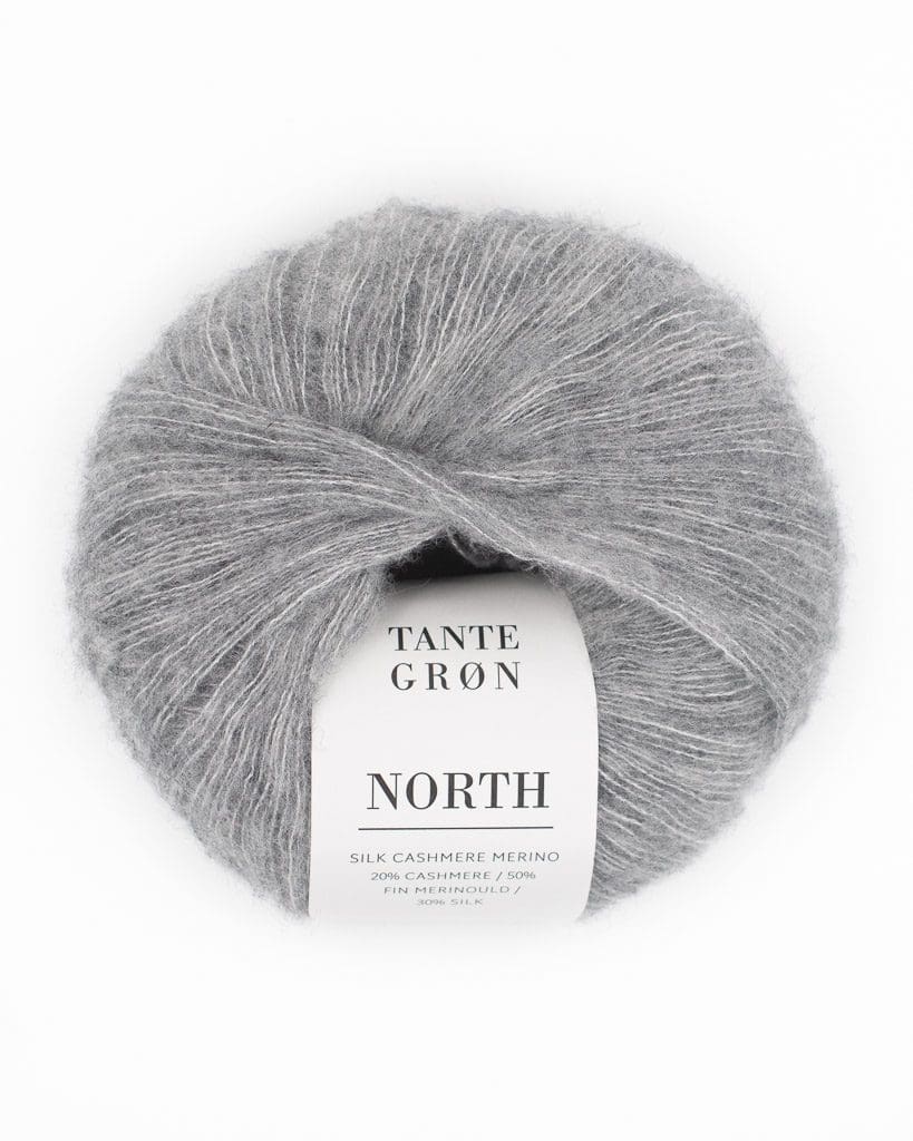 North giver et fjerlet og eksklusivt resultat. Det består af 50% Fin Merinould, 30% Silke & 20% Cashmere. Nøglet vejer 25 gram og har en løbelængde på 275 meter.