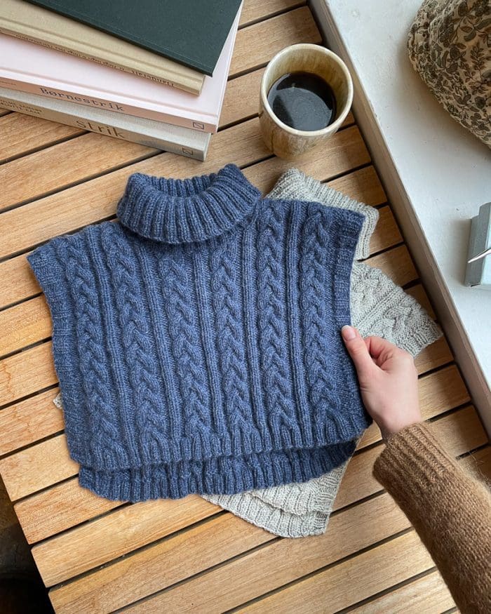 North Neck strikkes nedfra og op i et smukt snoningsmønster. Først strikkes forstykket og herefter rygstykket, hvorefter skuldermaskerne på forstykke og bagstykke strikkes sammen. Til sidst samles masker op i halsåbningen til rullekraven. North Neck strikkes i én tråd Bøllefrø, som er en skøn blød merinould. Opskriften er grundigt beskrevet og indeholder ikke svære teknikker. Det kræver blot at du kan strikke efter diagram.