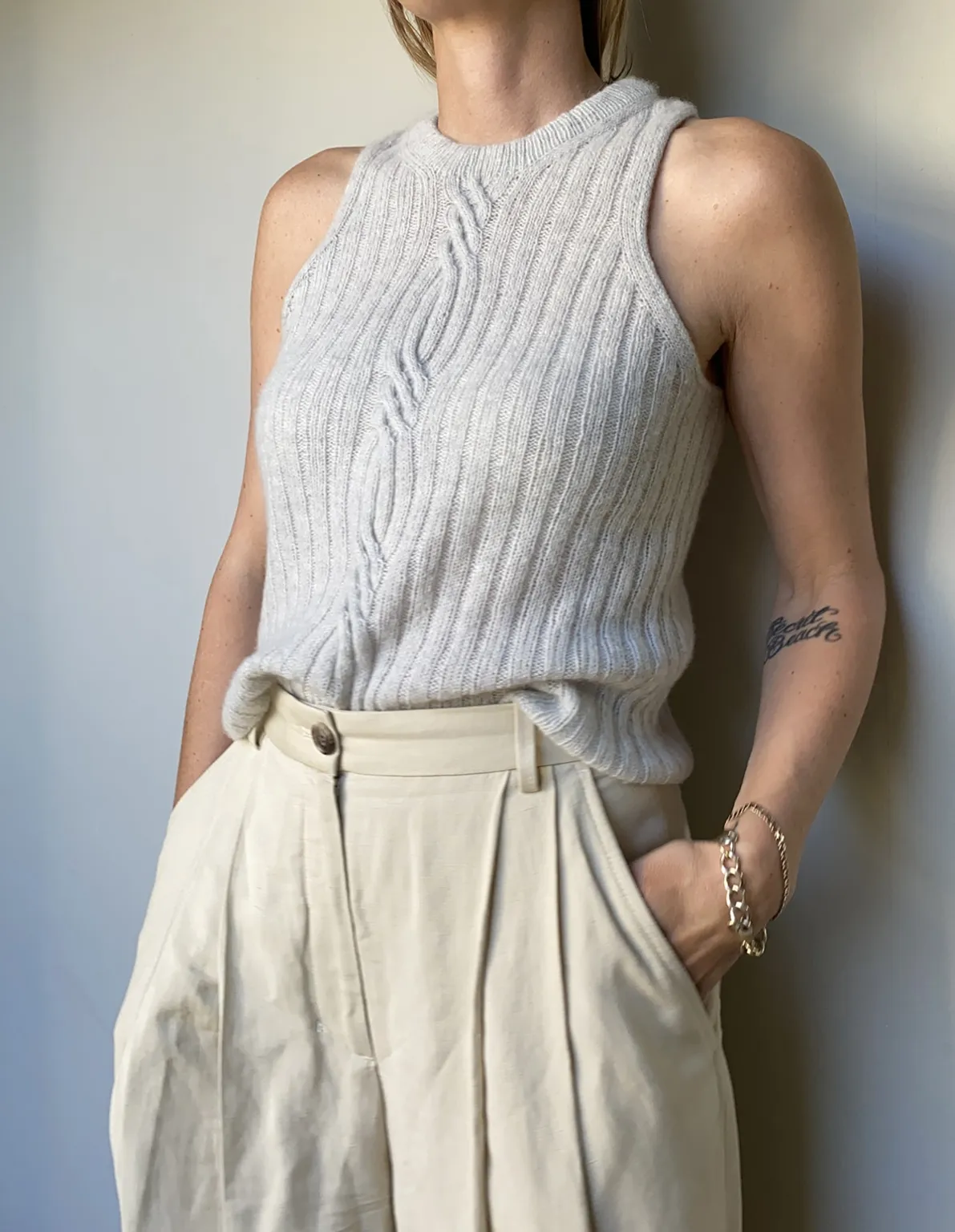 Twist Loop Top er en klassisk tank top strikket i rib med elegant snoningsdetalje foran.