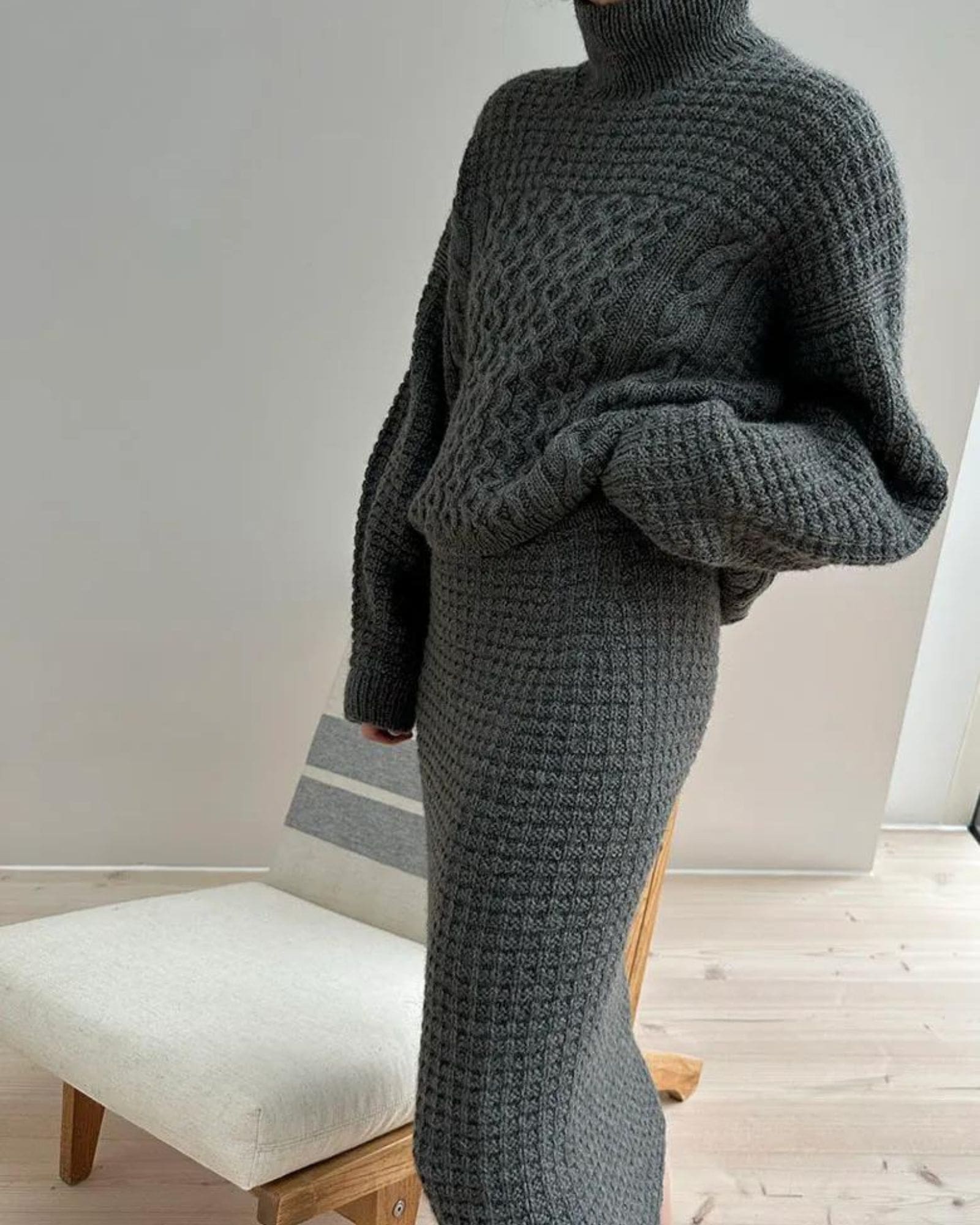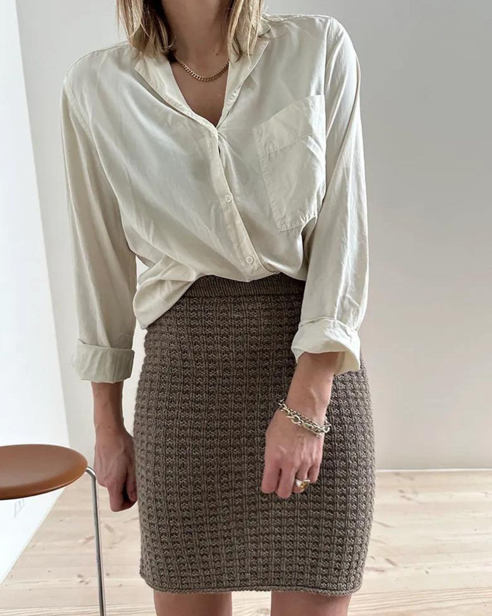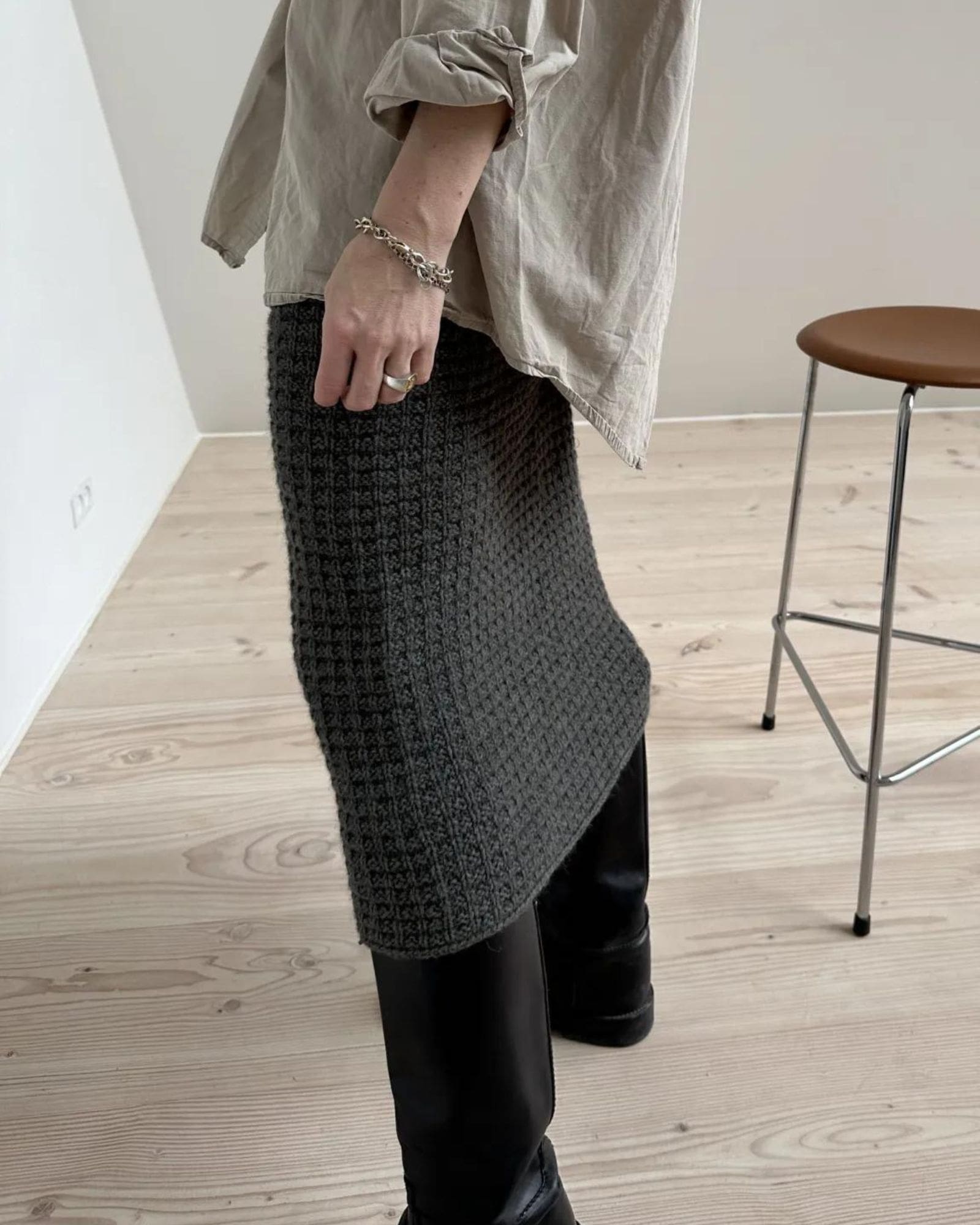 Waffle Loop Skirt er en nederdel med vaffelstruktur, høj talje og en lige silhuet. Opskriften indeholder 2 længder, en kort og en midi længde. Bemærk – dette kit indeholder garn til den korte længde. Ønsker du en midi længde skal ekstra nøgler tilkøbes.