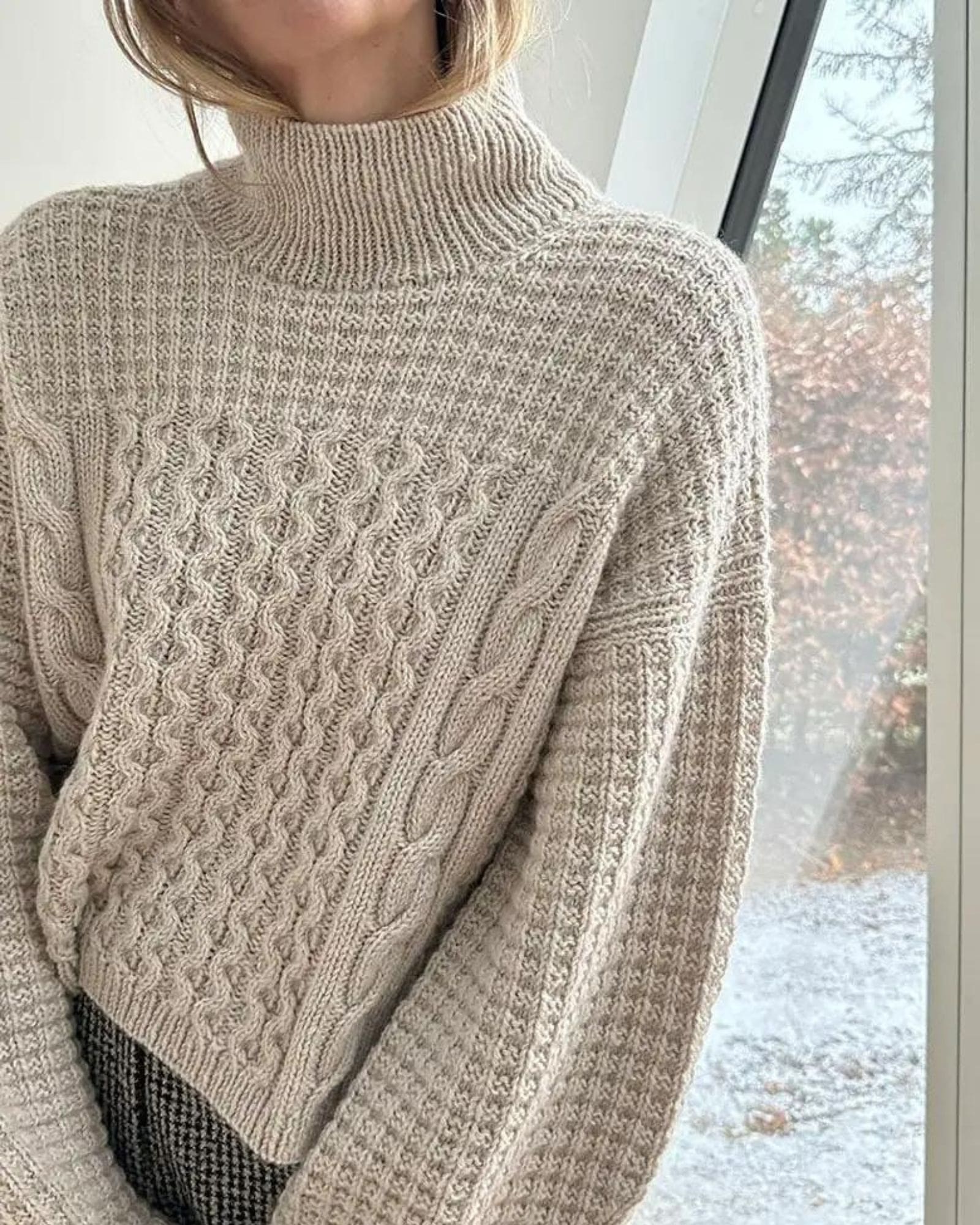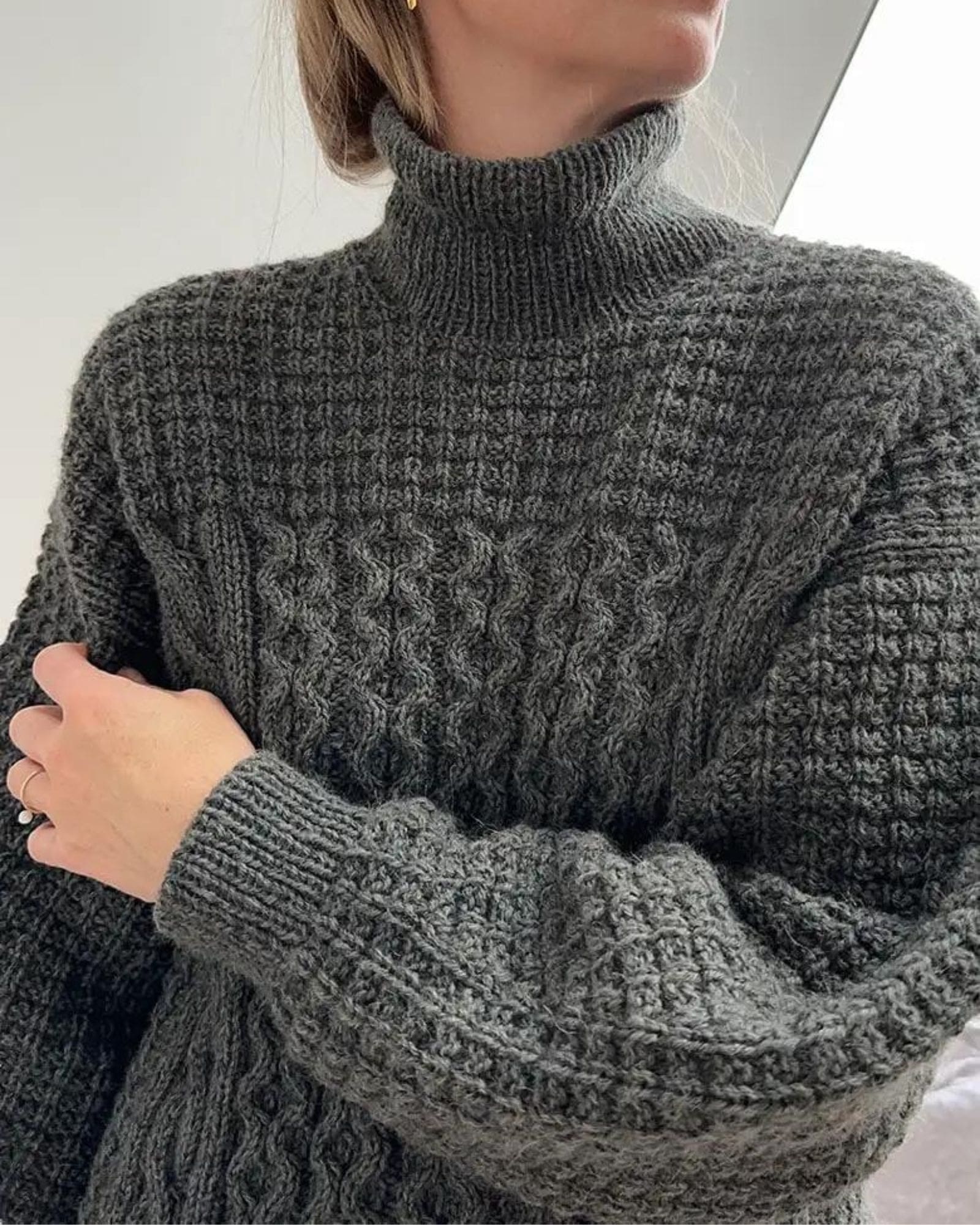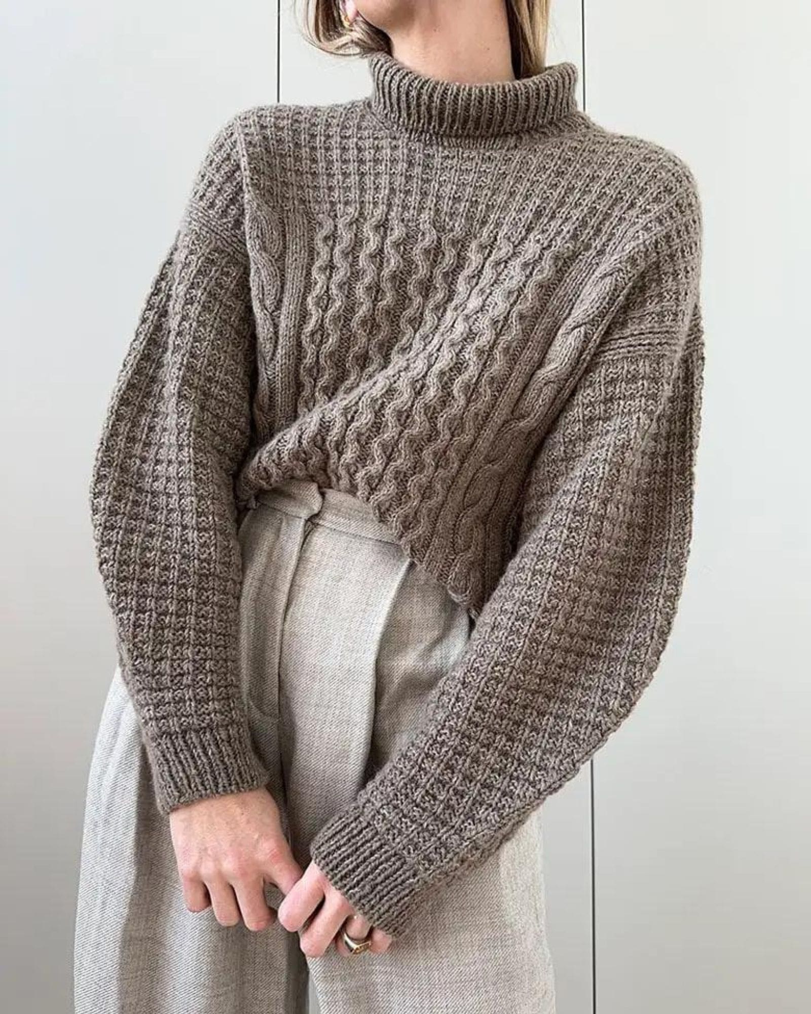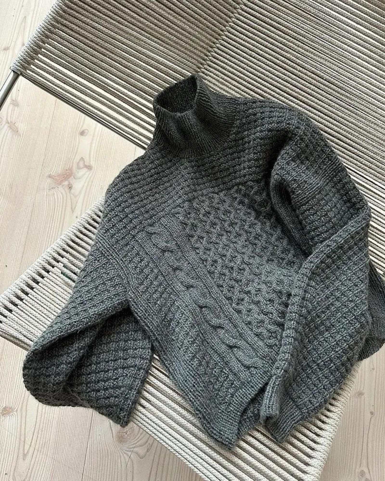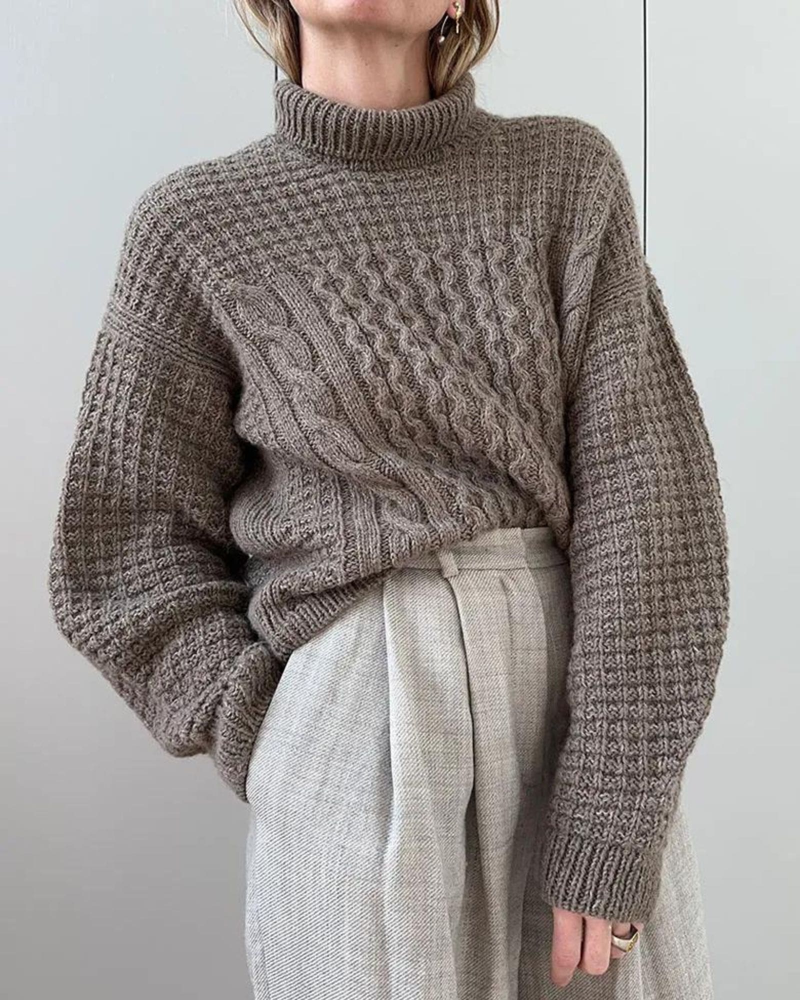 Waffle Loop Sweater er en sweater i afslappet, lige silhuet med høj hals. Detaljeret med vaffelstruktur og snoninger og med et ribpanel langs siderne.