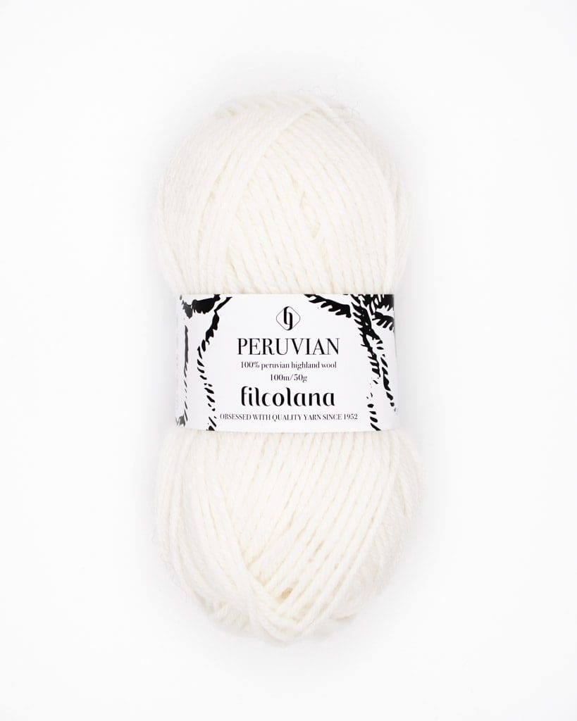 Peruvian Highland Wool fra Filcolana er en 100 % ren ny uld. Peruvian har en fast og jævn struktur, hvilket gør den nem at strikke med. Peruvian kommer i en stor farveskala og er særdeles velegnet til sweatre, puder og tæpper.
