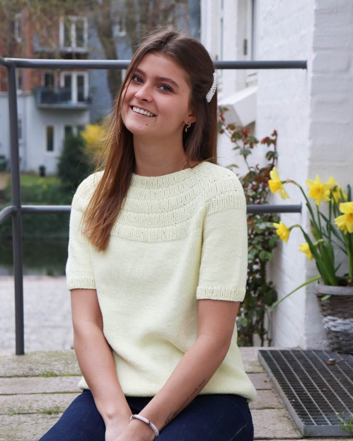 Ankers Sommerbluse strikkes oppefra og ned. Bærestykket består af segmenter med rib efterfulgt af klassiske raglanudtagninger. Ærmerne strikkes til sidst på strømpepinde eller med Magic Loop-teknik. Ankers Sommerbluse er monteringsfri. Lav en strikkeprøve, inden du går i gang, for at finde den pindestørrelse, der giver den rette strikkefasthed. Bemærk, at strikkeprøven bør vaske og blokkes, inden strikkefastheden måles.
