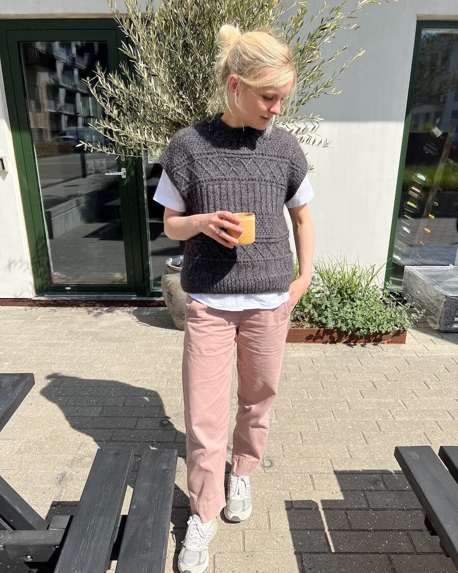 Den mørke Ingrid Slipover er strikket i Jensen fra Isager i farve 4S sammen med Silk Mohair fra Isager i farve 30.
