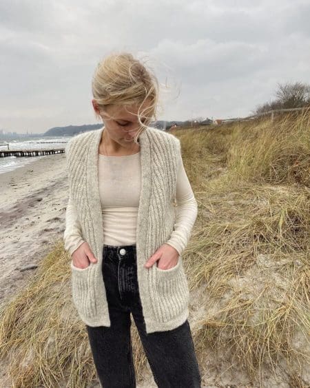 Strik en strikkeprøve for at finde den pindestørrelse, der giver dig den rette strikkefasthed. Vask strikkeprøven, inden du måler strikkefastheden.