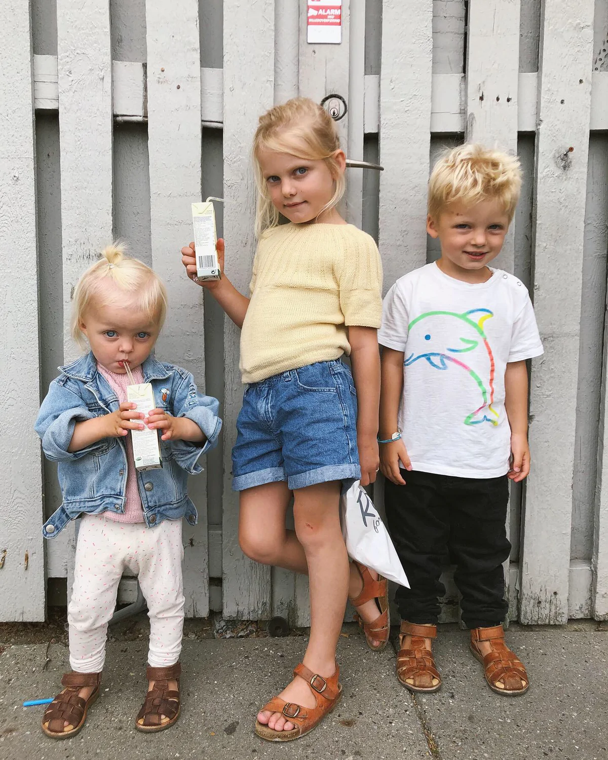 Sunday Tee Junior bør have et bevægelsesrum (positive ease) på ca. 6 cm i forhold til brystmålet. Størrelserne 6-9 mdr. (9-12 mdr.) 1-2 år (2-3 år) 3-4 år (4-5 år) 5-6 år (6-7 år) 7-8 år (8-10 år) 10-12 år (12-14 år) svarer til et brystmål på omtrent 47 (49) 53 (54) 56 (57) 59 (62) 64 (70) 77 (82) cm. Målene på den færdige tee er angivet på forsiden af opskriften (bemærk, at disse mål kun gælder, hvis strikkefastheden overholdes). Hvis barnet fx måler 56 cm rundt om brystet, bør du strikke en str. 3-4 år. En tee i str. 3-4 år har overvidden 62 cm og vil i nævnte eksempel give et bevægelsesrum (positive ease) på 6 cm. Hvis det målte brystmål afviger fra aldersguiden, bør du være opmærksom på at tilpasse længderne til den person, du strikker til. Det samme gælder, hvis barnet er lavere/højere end gennemsnittet.