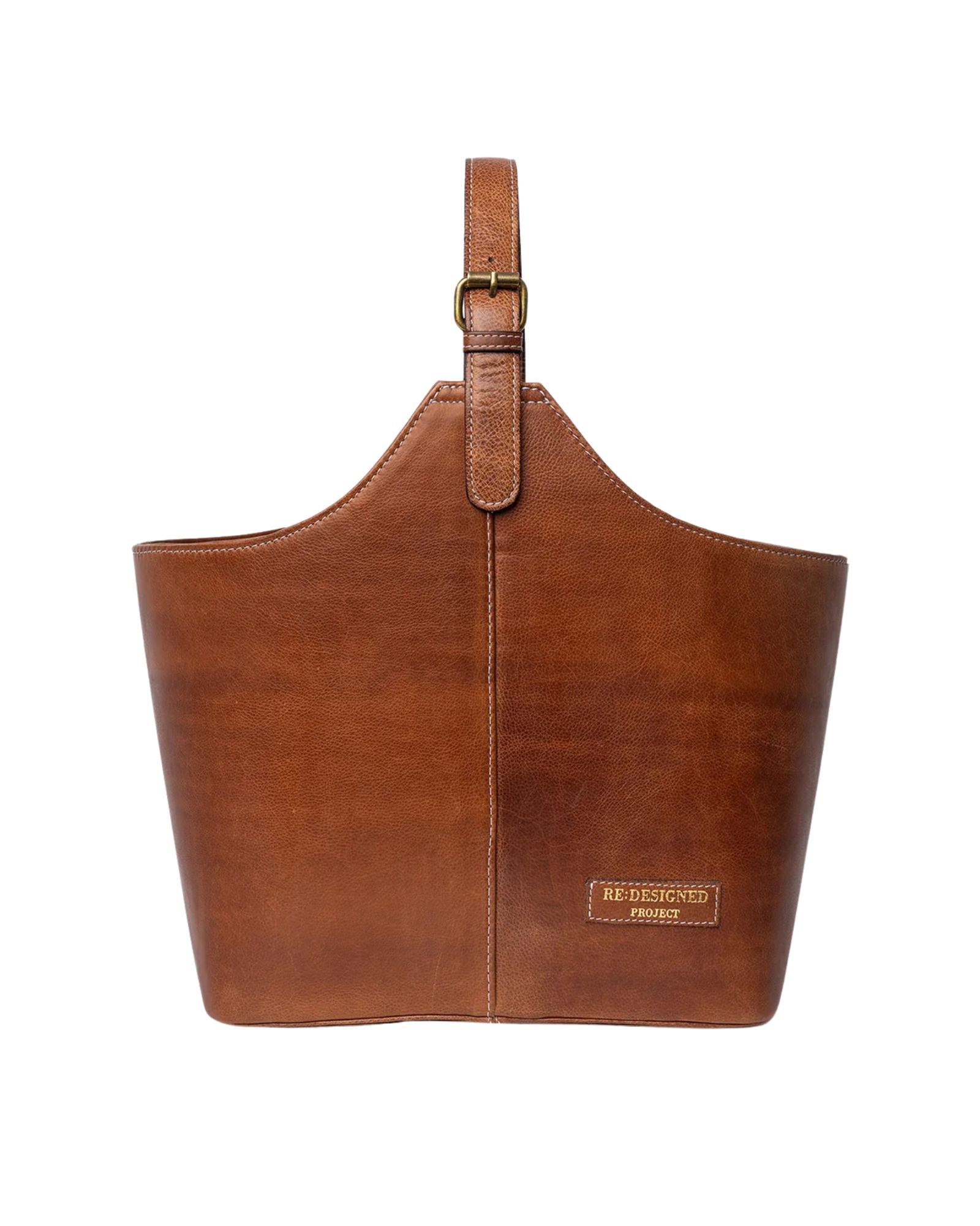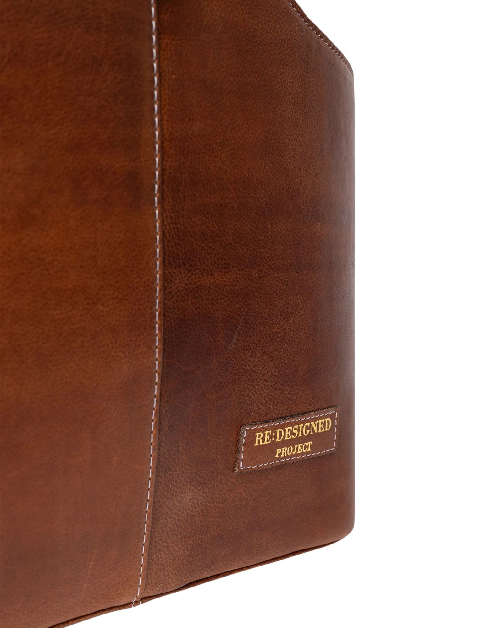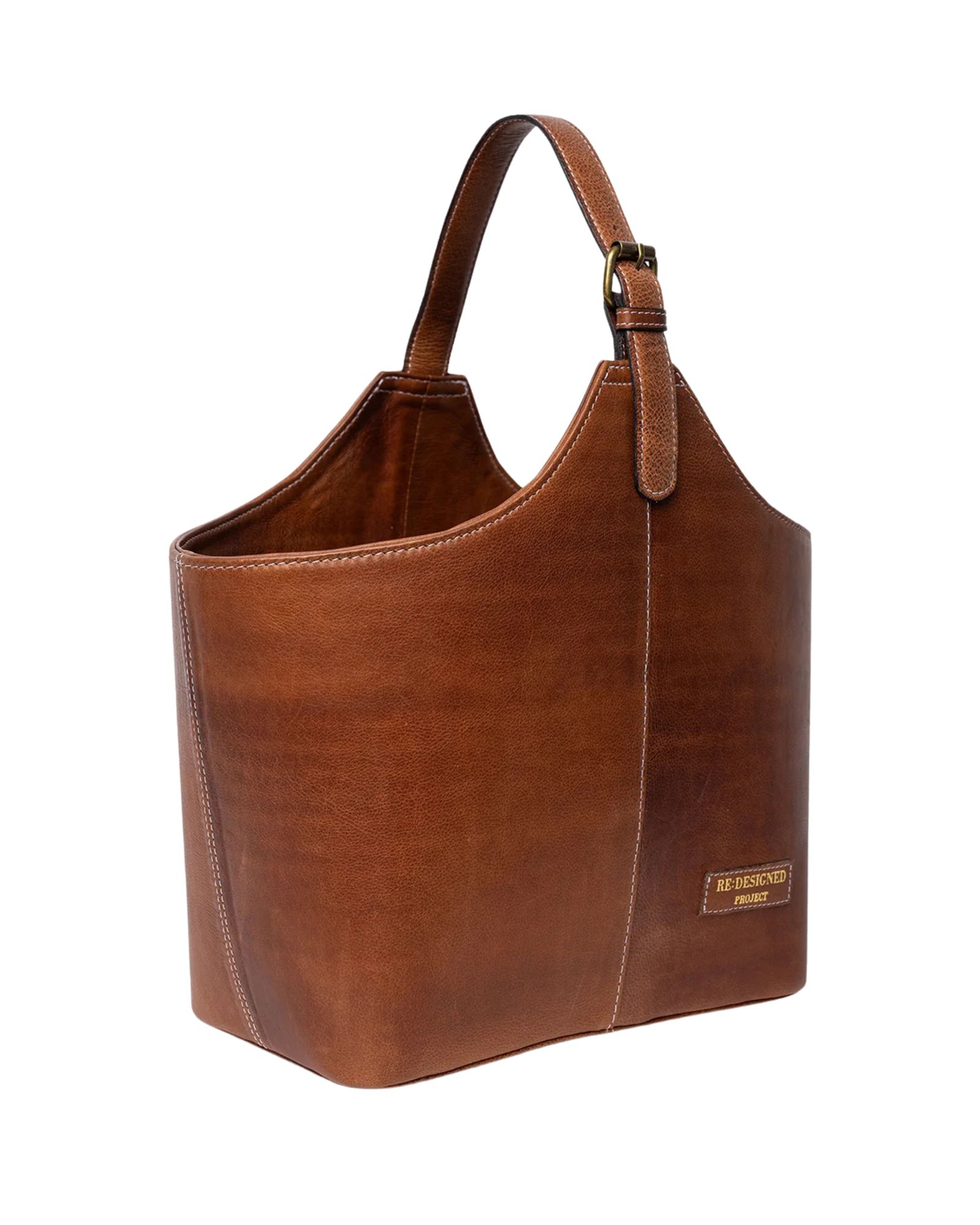 Project 71 fra RE:DESIGNED er en læder-spand, designet til stilfuld og praktisk opbevaring. Den robuste struktur og det komfortable håndtag gør det nemt at bære, mens det minimalistiske design sikrer, at dine projekter forbliver smukt organiseret.
