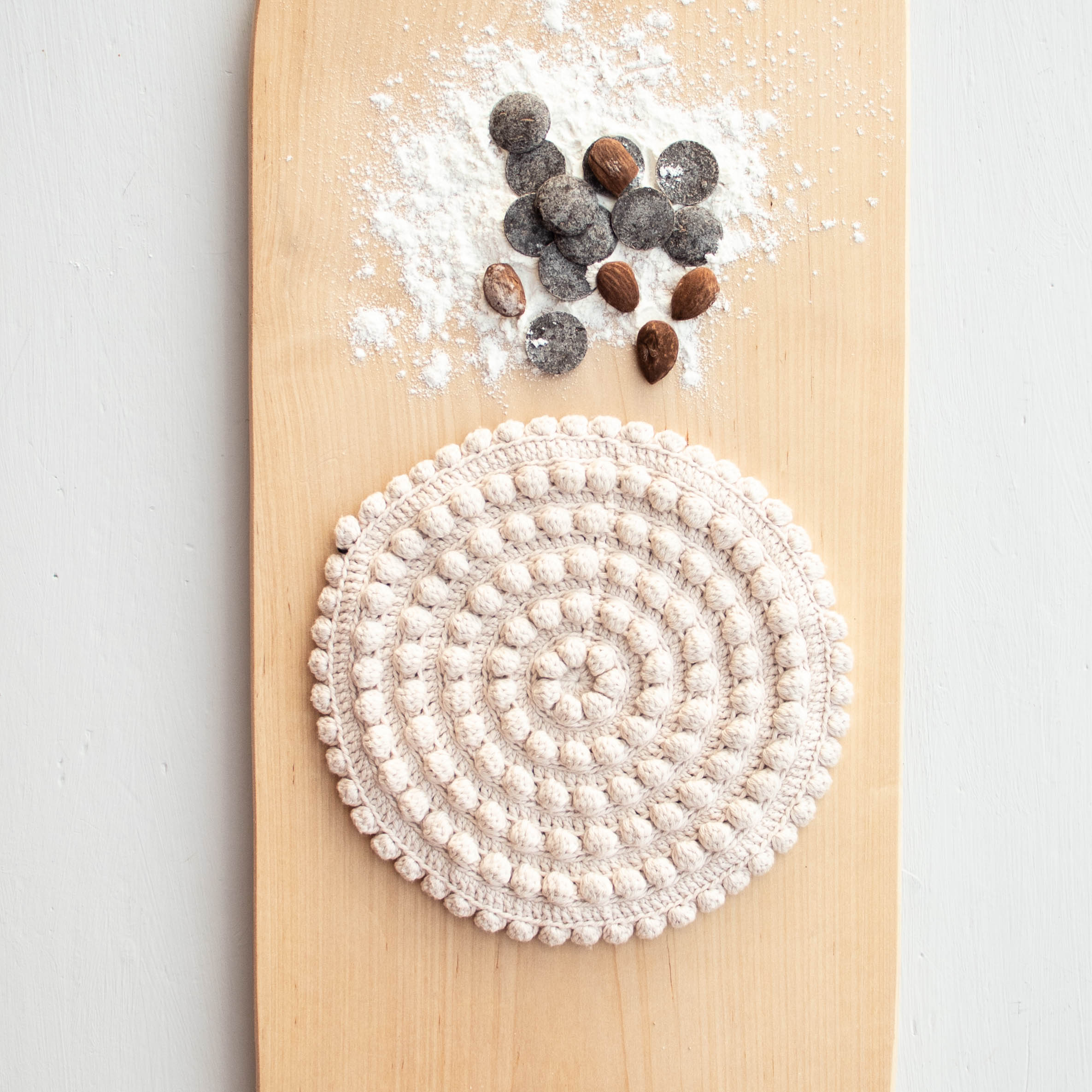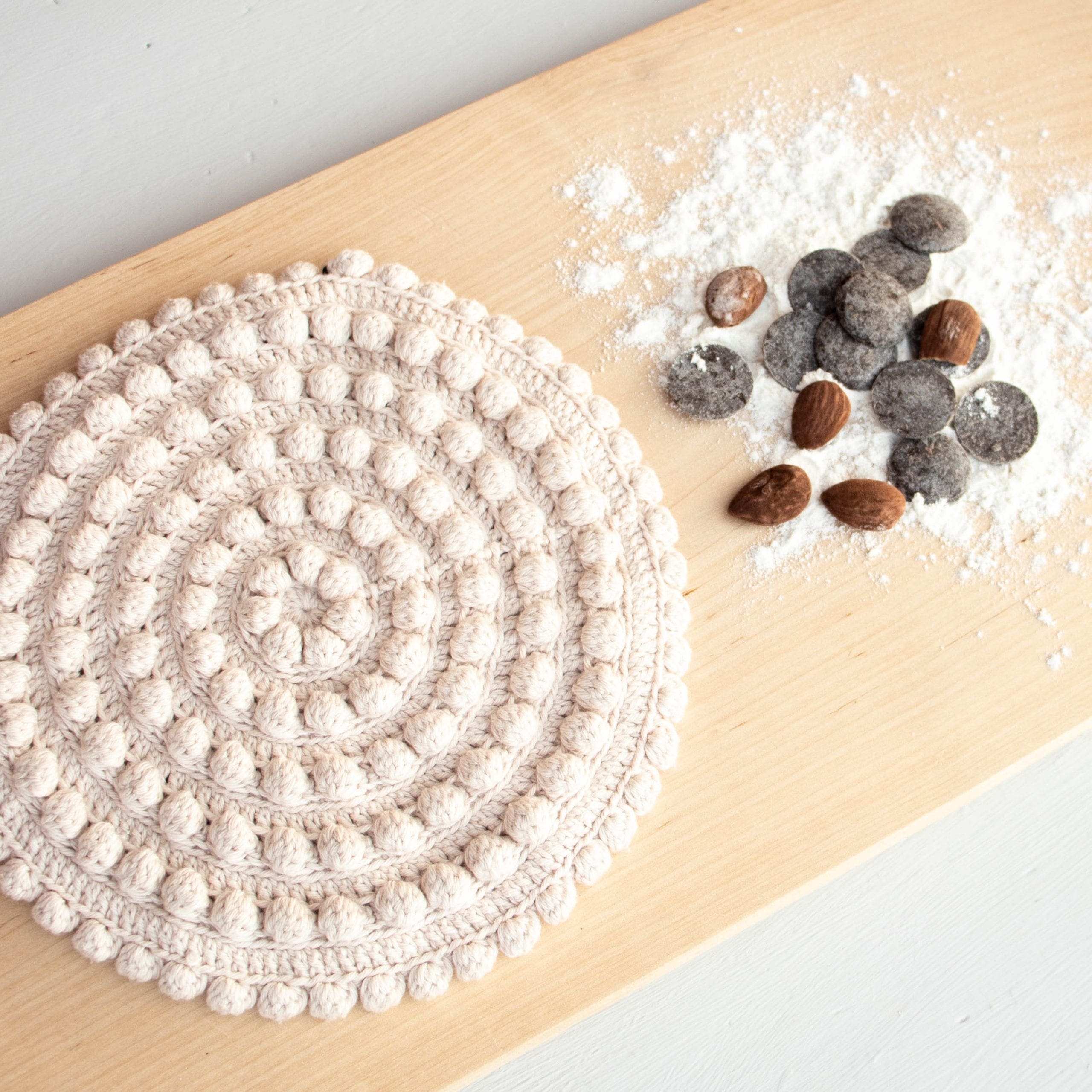 Skønne grydelapper hæklet i 100% bomuld. De er hæklet dobbelt og dermed gode til at afskærme for varme.