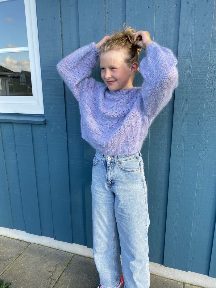 Nem, lidt oversize jumper, som strikkes oppefra og ned i ét stykke.