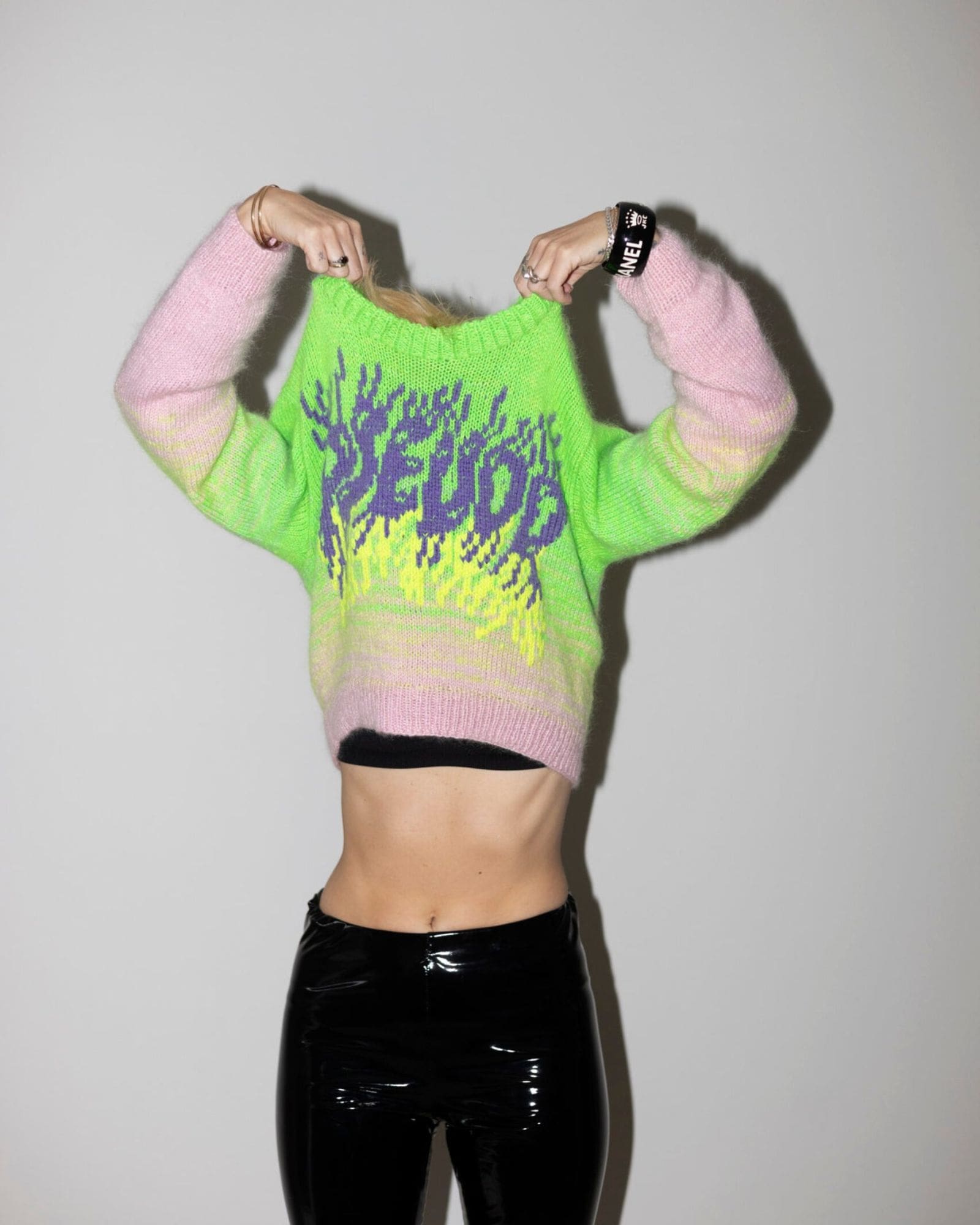 Sweateren strikkes oppefra og ned i ét stykke. Gradienten strikkes ved hjælp af et diagram, og mønsteret foran og på ryggen broderes på til sidst. Designet er et samarbejde mellem Matilde Digmann x Spektakelstrik og der er rig mulighed for at vælge lige præcis de fede farver der passer til dig!