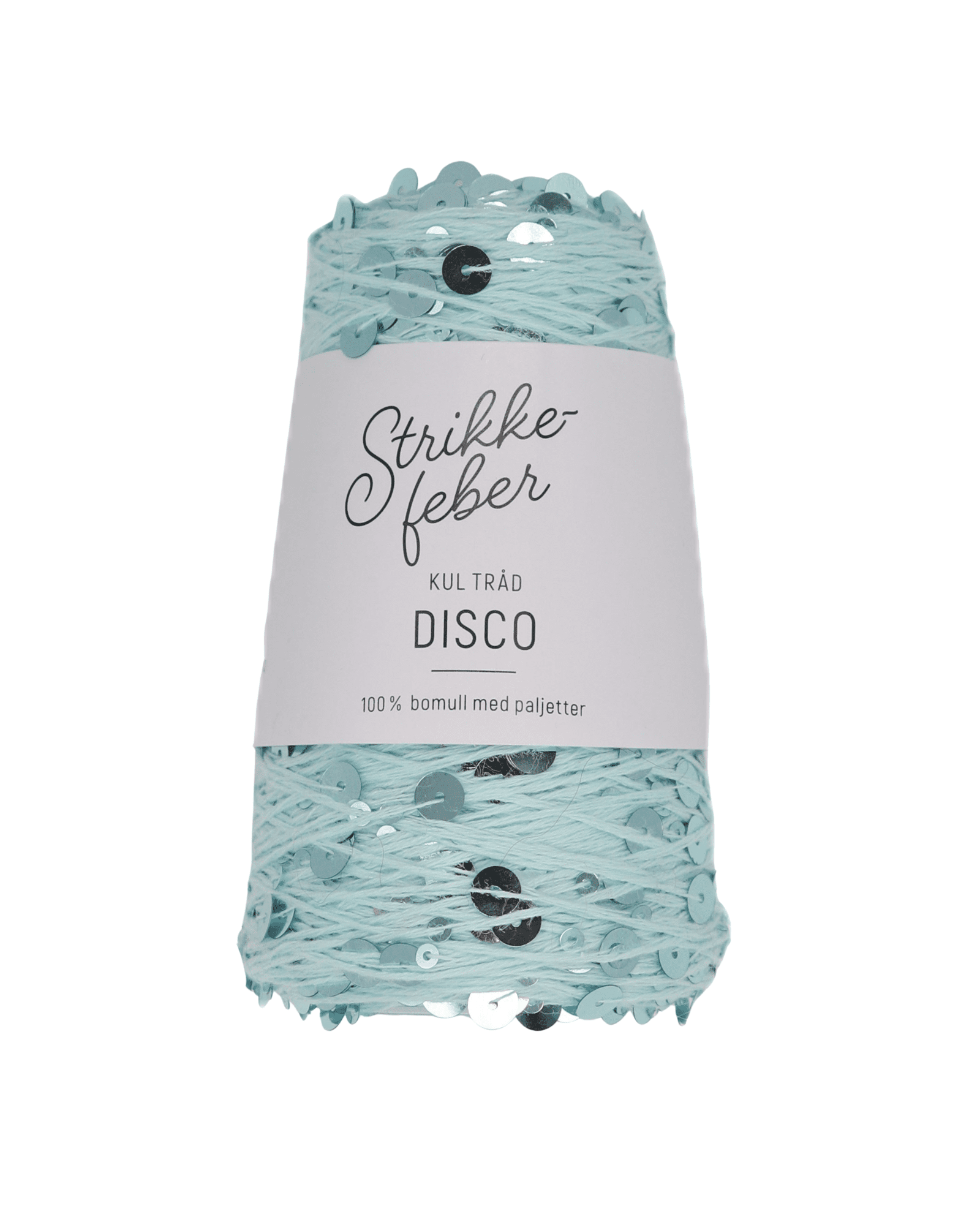 Disco-garnet fra Strikkefeber, er en festlig tilføjelse til dit strikke- eller hækleprojekt. Disco består af en 100% bomuld med små og store palietter, og fungerer både som følgetråd og alene. Vil du bruge den som følgetråd, så vær opmærksom på at den ikke ændrer på strikkefastheden, da den er en smule tykkere end andre typer følgetråd.