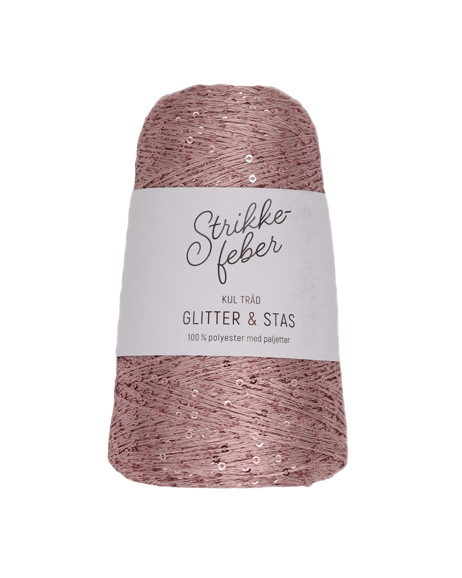 Med Glitter og stas fra Strikkefeber kan du lave festlige og smukke strikke- eller hækleprojekter. Glitter og stas består af en 100% polyester med små palietter på 2 mm. Garnet kan både strikkes og hækles med, og tilføjer dine glimmerdetaljer til dine projekter.