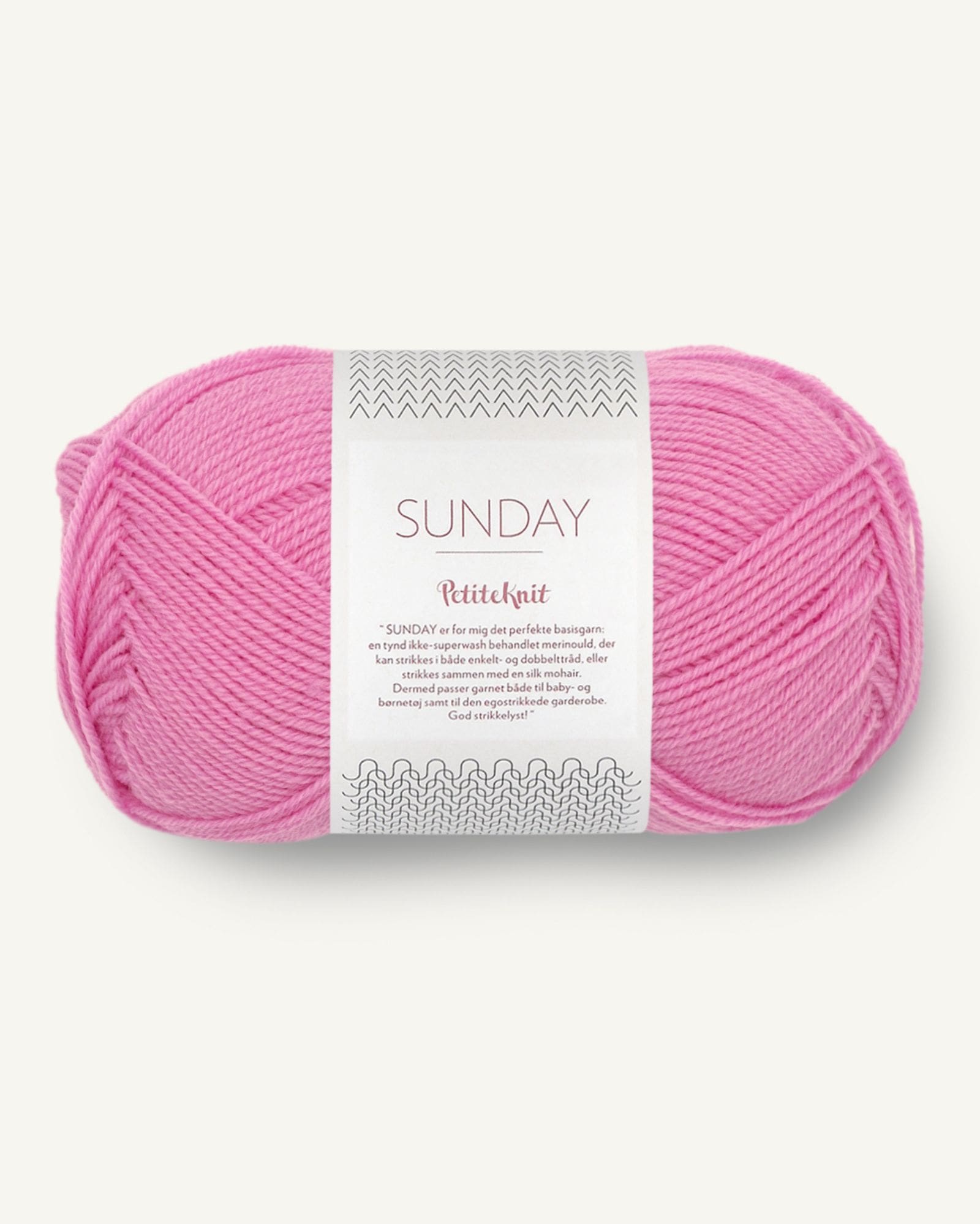 Sunday er en 100 % merinould til pinde nr. 2,5 og 3. Merinoulden har en blød overflade, som gør den skøn til både baby- og børnestrik. Sunday er også perfekt i to tråde eller sammen med en silk mohair. Dermed er den anvendelig til mange opskrifter og i forskellige strikkefastheder.