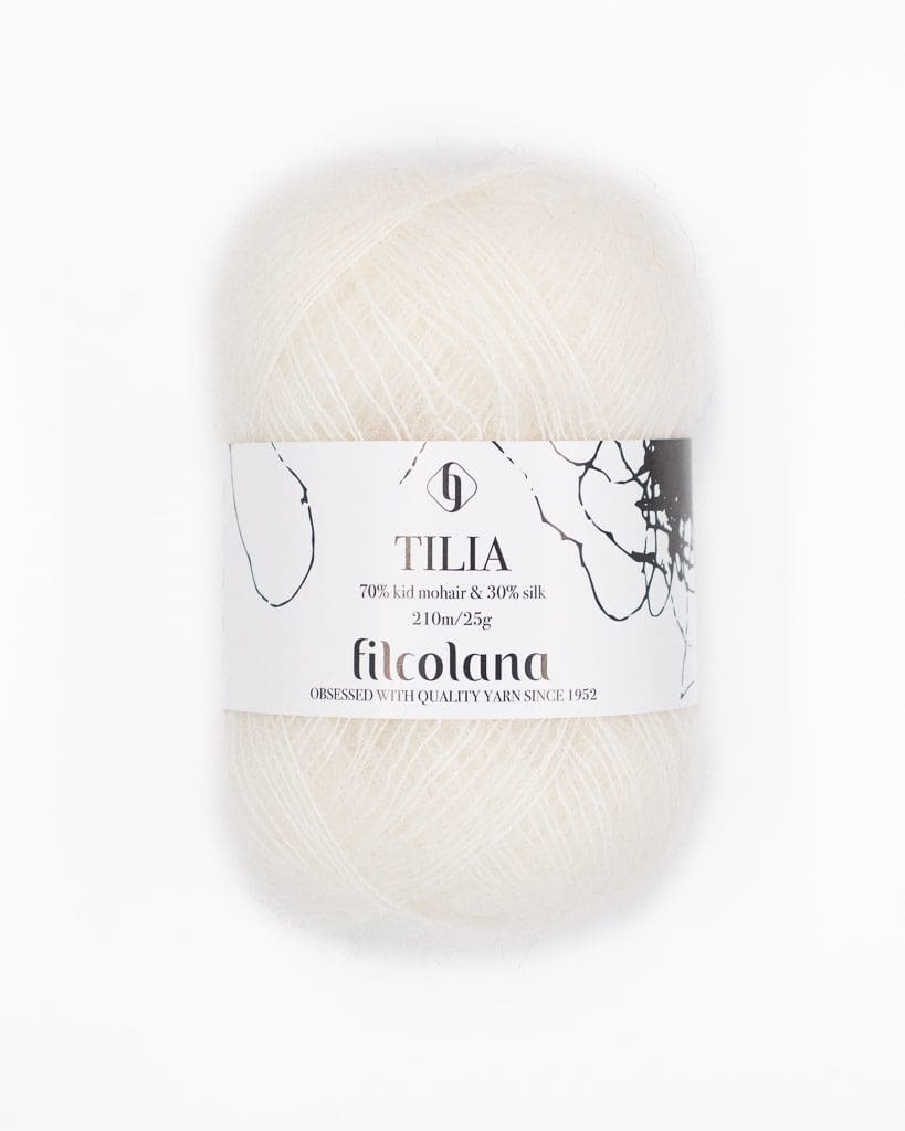 Tilia er en smuk og blød mohair. Det er en skøn blanding af 70 % kid mohair og 30 % Mulberry silke. Den smukke silketråd er fin og delikat med en sky af let og fin mohair omkring sig.