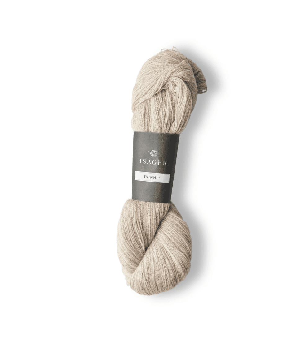 Isager Tvinni er udviklet af Marianne Isager i samarbejde med Skive Uldspinderi. Ulden i garnet er den fineste merinokvalitet, virgin wool, som er førstegangsklip fra lam. Fibrene er lange og fine, hvilket giver en meget holdbar kvalitet. En trøje, strikket i Tvinni, har en lang holdbarhed, hvis den behandles med omhu. Da garnet er tvundet med to tråde, egner det sig fint til glatstrikning på rundpind, og med sin lette vægt er det et garn, der kan bruges i mange sammenhænge, både alene og i sammenstrikninger med andre kvaliteter i f.eks. Jacquardstrikning (Fair Isle strik og Norsk mønsterstrik).