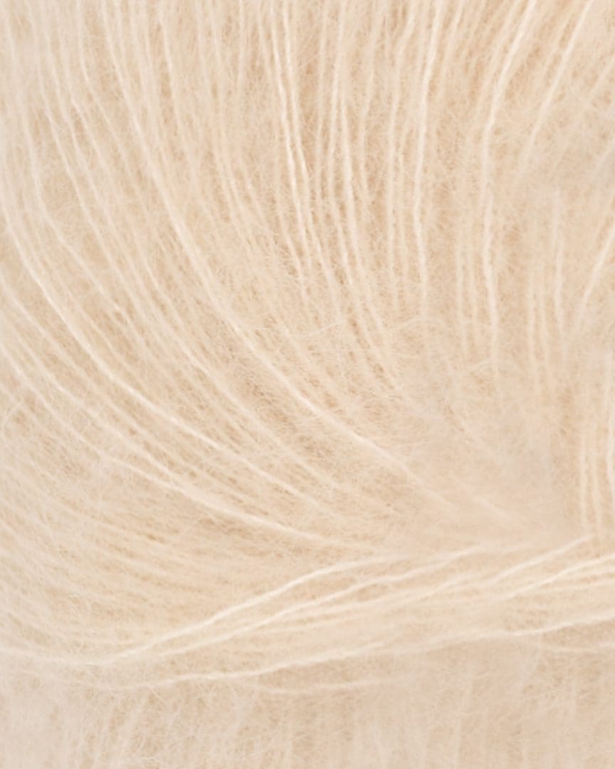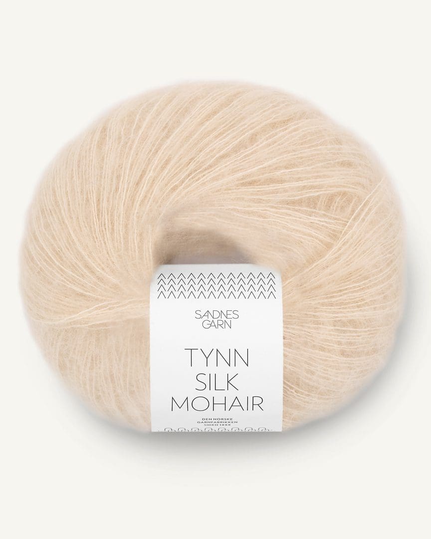 Tynn Silk Mohair fra Sandnes er en smuk og meget blød Mohair, som består af 57% Mohair, 15% Uld og 28% Silke. Den er tynd og fin som giver en perfekt følgetråd, som anvendes til rigtig mange strikdesigns.
