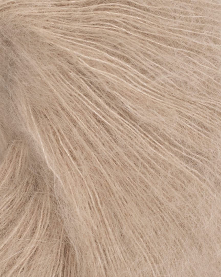 Tynn Silk Mohair fra Sandnes er en smuk og meget blød Mohair, som består af 57% Mohair, 15% Uld og 28% Silke. Den er tynd og fin som giver en perfekt følgetråd, som anvendes til rigtig mange strikdesigns.