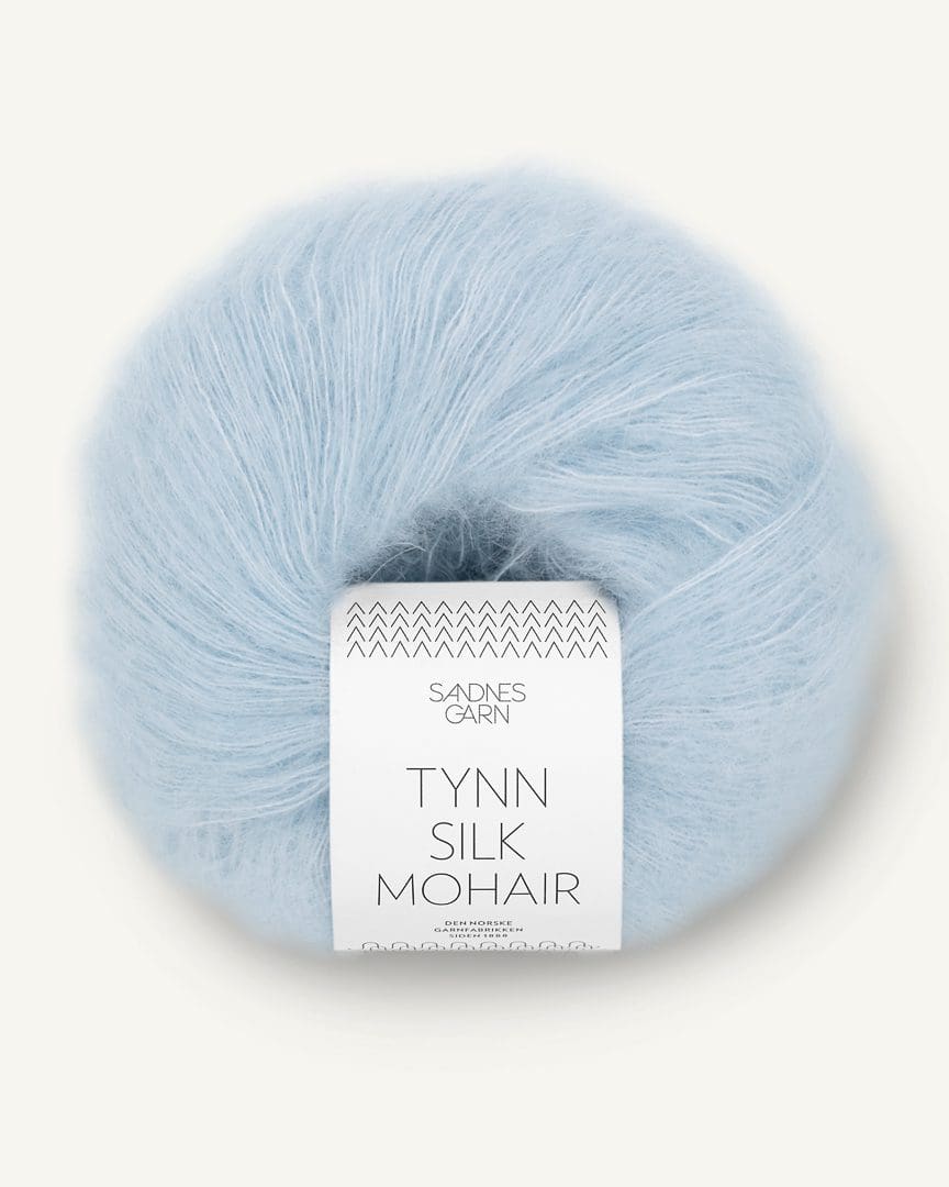Tynn Silk Mohair fra Sandnes er en smuk og meget blød Mohair, som består af 57% Mohair, 15% Uld og 28% Silke. Den er tynd og fin som giver en perfekt følgetråd, som anvendes til rigtig mange strikdesigns.