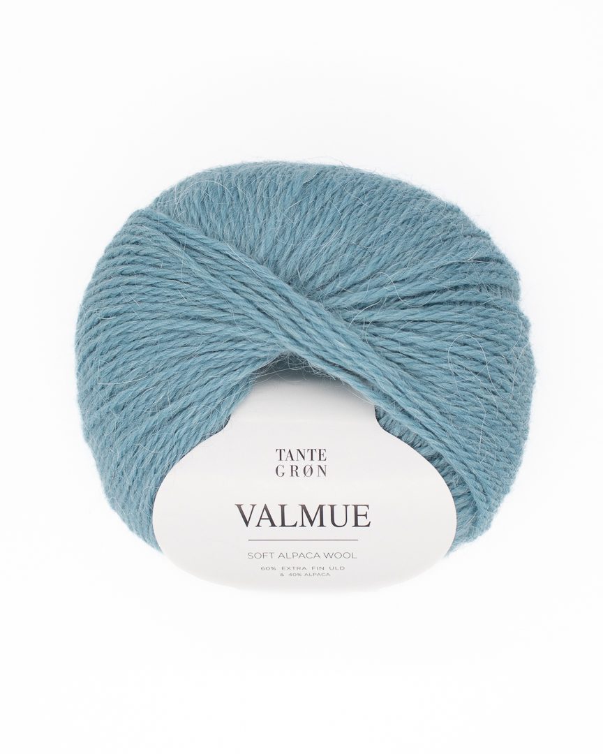 Valmue er en lækker og blød kombination af 40 % alpaka og 60 % ekstra fin uld. Den strikkes på pinde 3,5 til 4,5 alt afhængig om det skal være tæt strikket eller lidt løsere. Valmue er en alsidig garn og er smuk i glatstrik såvel som strukturstrik. Indholdet af alpakka giver også Valmue en let og lodden struktur i det færdige strik.