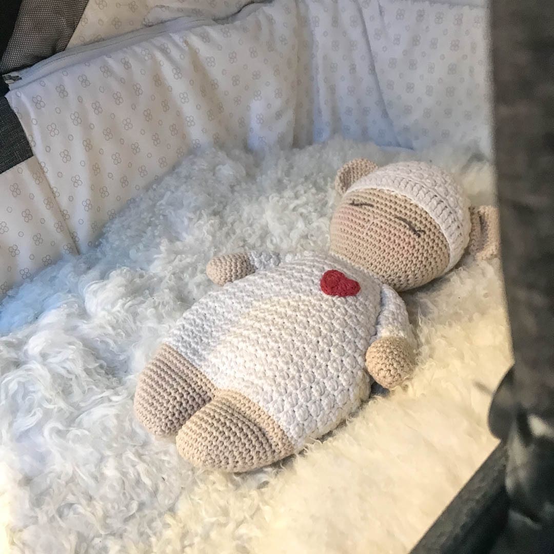 En lille varmedunk, som er hæklet som et får. Brug den i barnevognen, så den bliver dejlig lun inden barnet lægges til at sove i den. Eller bare som almindelig sovebamse hjemme i børneværelset. Der kan syes en lille stofpose, som fyldes med hvedekerner. Denne pose kan så tages ud og varmes i ovnen ved lave grader – så puttes posen ind i fåret og er nu klar til at lune. Den kan også fyldes med fyldevat og bruges som bamse.