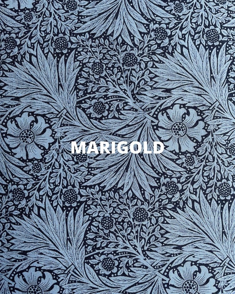 Foret til clutchen er designet af William Morris, som var en engelsk kunstner, forfatter, socialist og aktivist. Han var en af grundlæggerne af den britiske formgivningsbevægelse Arts and Crafts. Han var også især kendt som formgiver af tapeter og stoffer. Mønsteret han har designet, som er med i adventskalenderen, hedder Marigold og er i 100 % bomuld.